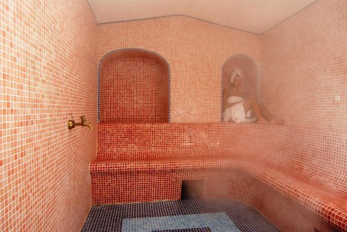 Inoltre, nell'innovativo reparto Spa, per completare una serie di “emozioni termali” è disponibile gratuitamente il Percorso Romano che include sauna, bagno turco, calidarium, frigidarium, docce aromatiche e vasca idromassaggio con panca geyser.