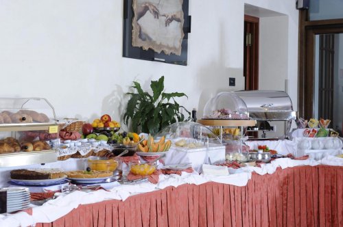 Das Frühstück wird in einem sonnigen Raum mit herrlichem Blick auf die Lagune am Buffet serviert.