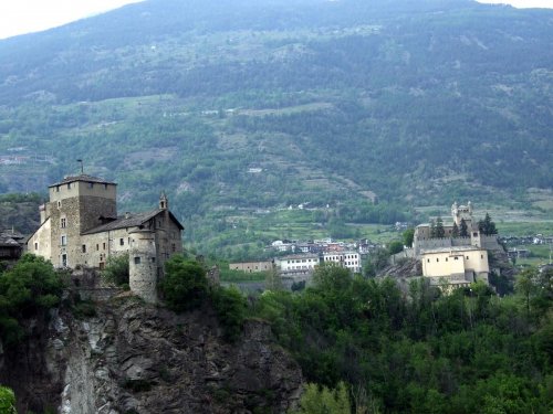 Der nur 500 Meter entfernte Bahnhof Saint Pierre liegt auf der Bahnstrecke Turin - Aosta - Pré Saint Didier.