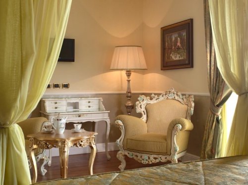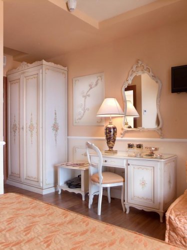 Die sonnigen und gemütlichen Zimmer des Hotel Confine sind mit Möbeln aus dem Kunsthandwerk und mit qualitativ hochwertigen Dienstleistungen eingerichtet.