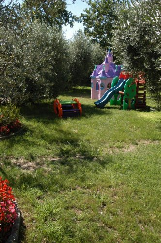 In den Sommermonaten kann man sich bei einem Getränk auf der Terrasse entspannen, während die Kinder sich auf dem Spielplatz im Garten vergnügen.