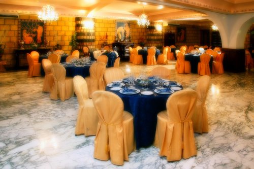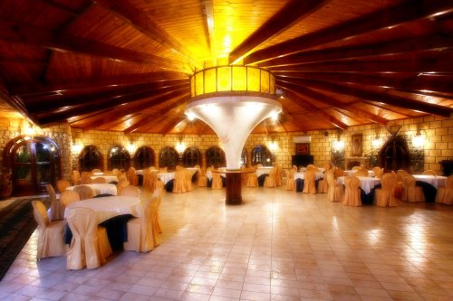 Im eleganten Saal mit seinen majestätischen Säulen aus dem heimischen Stein 'pietra viva' und dem kleinen, internen Brunnen können Feierlichkeiten, Hochzeiten und Empfänge mit bis zu 400 Gedecken abgehalten werden.