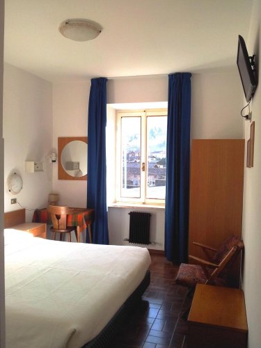 Le camere,con letto matrimoniale o due letti singoli, godono di vista panoramica sulle Dolomiti del Brenta e sul fiume Noce, oppure vista bosco. Dispongono tutte di servizi privati, asciugacapelli, telefono, radio, cassetta di sicurezza, TV color 20"/24” con ricezione canali esteri. Quasi tutte sono dotate di porte con serratura ad apertura elettronica.