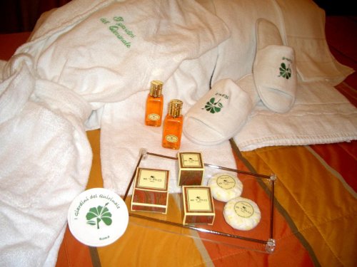 Die Zimmer des I Giardini del Quirinale sind geräumig, hell und mit allem Komfort ausgestattet, wie privatem Bad mit eleganter Wäsche, unabhängig regelbarer Klimatisierung /Heizung, Satelliten – Fernsehen mit LCD- Bildschirm, direktem Telefonanschluss, Schreibtisch, Minibar, Sicherheitsfach, Körperpflege- Set und Pantoffeln.