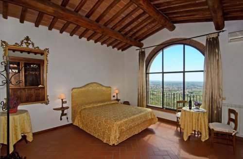 Le camere de I Sette Borghi sono tutte in tipico stile toscano con pavimenti in cotto, soffitti a travi e letti molto confortevoli.