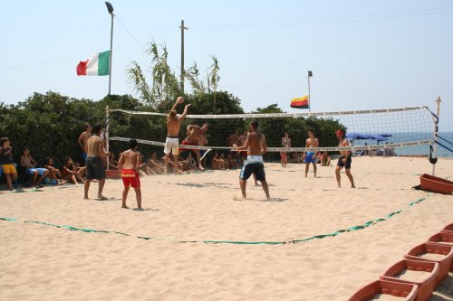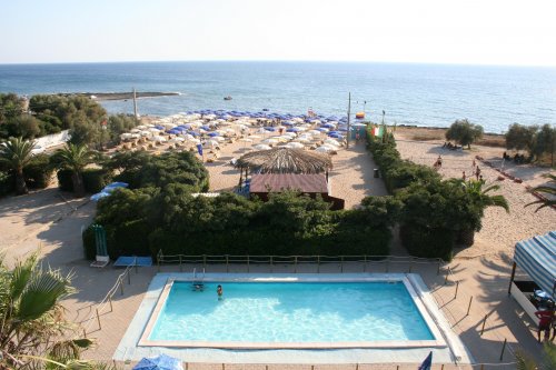 Der etwa 1500 Quadratmeter große Strand liegt nur 500 Meter außerhalb der Anlage. Sonnenschirme und Liegestühle, sowie ein Kinderbecken mit Pavillon für Animationsveranstaltungen, ein Kiosk, Toiletten und ein Beachvolleyballfeld sind vorhanden.