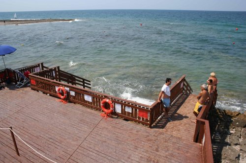 Zwischen dem 13. Juni und dem 12. September wird der Strand von einem kostenlosen Shuttle-Service bedient. Ein Sonnenschirm und zwei Liegestühle sind pro Apartment oder Zimmer im Preis inbegriffen. Im näheren Umkreis finden sich zudem mehrere kleine öffentliche Fels- und Sandbuchten.