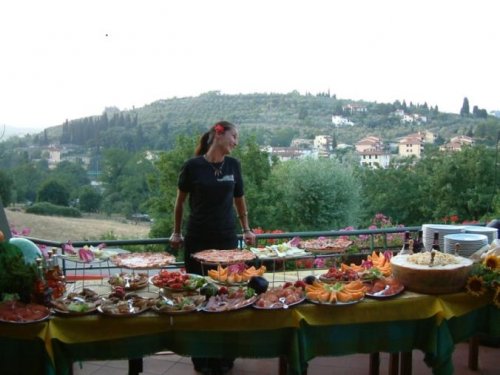 Wir organisieren Erfrischungen, Geburtstagsfeiern und Festessen sowohl draußen (rund um den Pavillon im Garten) als auch im großen Mehrzweckssaal des Hauses im Untergeschoss.