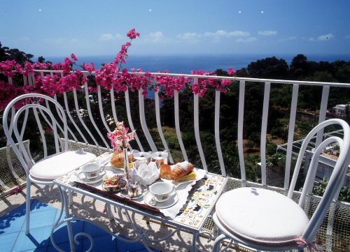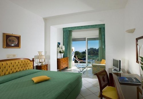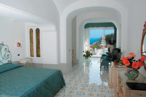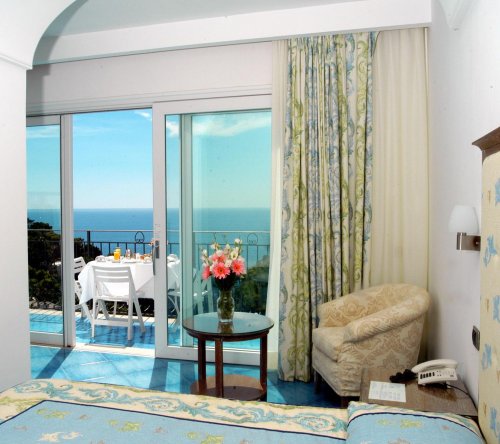 Die großen, geräumigen Junior Suiten und Suiten besitzen einen Balkon oder eine Terrasse mit Blick auf das Meer, einen Sitzbereich und sind charakterisiert durch Majolikaböden, die in jedem Zimmer verschieden sind. Die Junior Suiten sind mit Badewanne und separater Dusche oder mit Whirlpool- Badewanne und zwei Toiletten ausgestattet. Die Suiten zeichnen sich durch mehr Größe und Geräumigkeit aus.