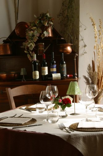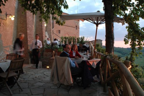 Das Restaurant mit seinen stimmungsvollen Deckengewölben beherbergt eine Küche, die viel auf die traditionellen Aromen und die delikate Kochkunst dieser Breiten legt, als da wären Trüffel, Pecorino-Käse, Wurstwaren aus Siena, Honig und Safran, all diese Leckereien begleitet von den besten Weinen der Toskana.