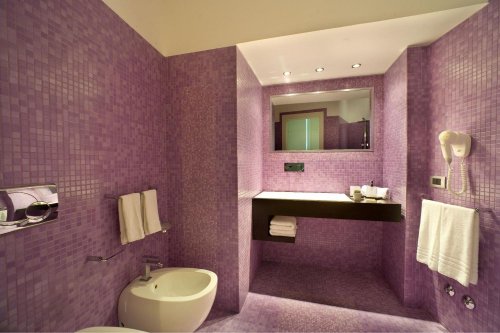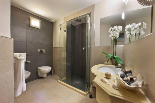 Die Badezimmer sind mit Mosaiken, Marmorverkleidungen und Design-Accessoires besonders geschmackvoll gestaltet.