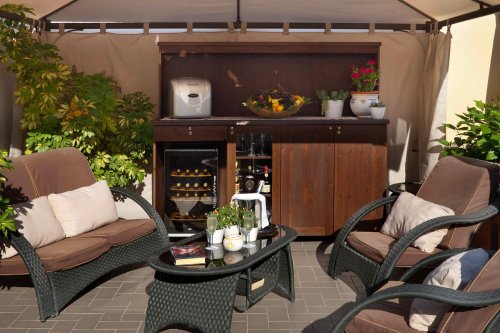 Zudem sind komplett unabhängige Apartments mit Selbstverpflegung verfügbar, die aus einem Open-Space-Bereich mit zwei Ebenen bestehen und bis zu drei bis vier Personen Platz bieten. Die Apartments sind mit einer Küchenzeile, einem Kühlschrank, einer Mikrowelle und Geschirr ausgestattet.