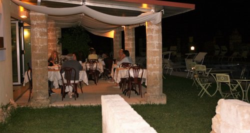 Das Restaurant mit großer Fensterfront und Poolblick serviert köstliche Gerichte der traditionellen italienischen und salentinischen Küche, wie zum Beispiel Orecchiette (Nudelspezialität) mit Rübstiel, Parmigiana (eine Art Gemüseauflauf mit Parmesankäse und Tomatensoße) mit Auberginen oder Zucchini sowie gefüllte Focaccia mit Gemüse.