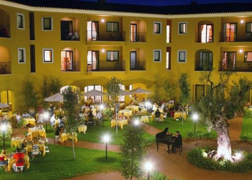 Die 155 Zimmer des Hauptgebäudes blicken auf einen bezaubernden Platz mit Boutiquen und kleinen Geschäften, in denen traditionelles sardisches Kunsthandwerk erhältlich ist.