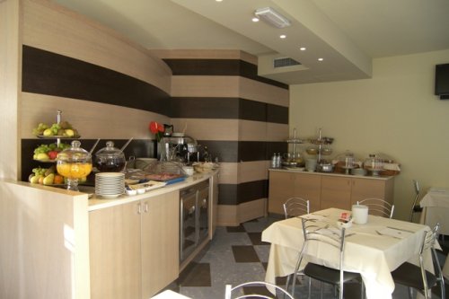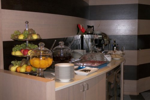 Im Speiseraum wird von 07:00 bis 10:00 Uhr das Frühstücksbuffet serviert. Dieses ist auf Anfrage auch im Zimmer erhältlich.