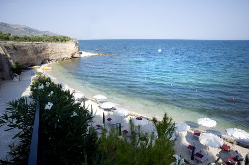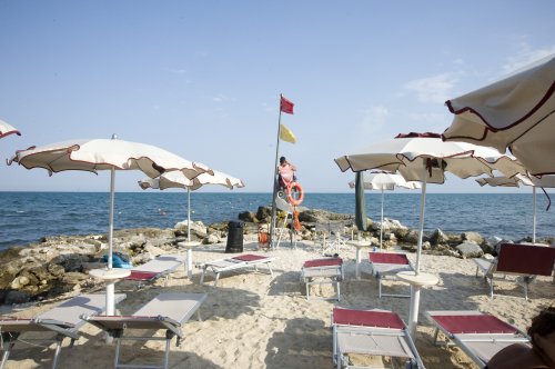 - Suite, bestehend aus Wohnraum mit Schlafcouch, geräumigem Doppelzimmer, Bad und Panoramaterrasse mit Blick auf den Golf von Manfredonia und auf den Pool.