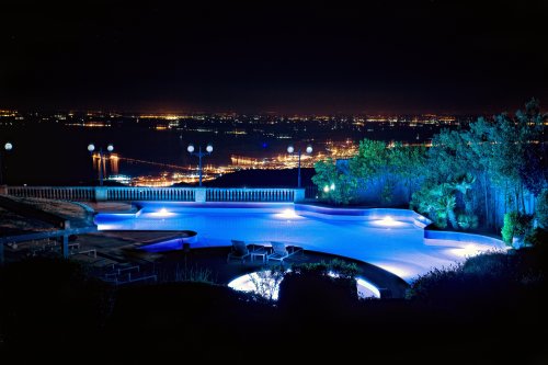 Der Normannensaal („Sala Normanni“) mit Blick auf den Golf von Manfredonia und Swimmingpool mit künstlichem Wasserfall hat ein maximales Fassungsvermögen von 350 Personen.