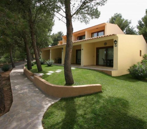 FERIENDORF: Dieser Bereich mit zweistöckigen Bungalows aus Backsteinen liegt in einer mediterranen Grünanlage aus Strandkiefern, jahrhundertealten Olivenbäumen und Oleander.