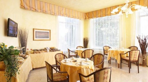 Das Frühstück wird Ihnen im lichtdurchfluteten Saal, der vom Park umgeben ist, am Buffet serviert.
