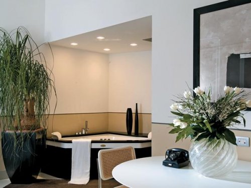 - Die Suite bietet in einem Doppelbett zwei Personen Platz und ist mit einem Wohnbereich mit Tisch und Stühlen sowie einem eigenen Bad mit Dusche und Massagebadewanne ausgestattet.