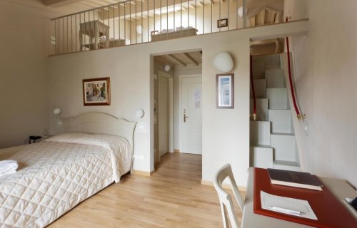 Nelle Suite si assapora l’atmosfera romantica di una vera Residenza d’Epoca. Costituite da ambienti separati, una camera con un grande letto matrimoniale e un’area lounge con un comodo divano letto, queste ampie stanze offrono una splendida vista laterale sulla Torre di Pisa e sulla storica Via Santa Maria.