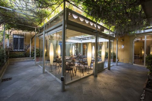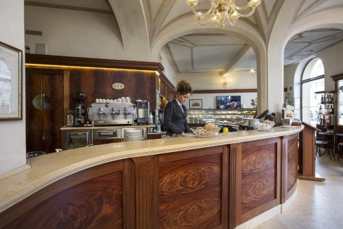 Caffè, cappuccino, succhi di frutta freschi, paste ripiene e panini salati vengono serviti nel chiostro all'aperto o nelle eleganti salette da thé interne.
