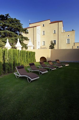 - Zimmer „Deluxe“; geräumige, helle Zimmer in verschiedenen Gebäudeteilen mit Blick auf den Hof und die edlen Gärten oder auf einen Teil des Vesuvs. Einige der Deluxe-Zimmer verfügen über einen kleinen Außenbereich oder einen Balkon. Einige der größeren Zimmer eignen sich auch für drei Personen.