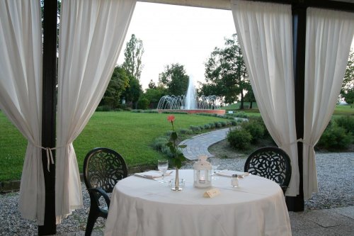 In der schönen Jahreszeit lädt das Restaurant auch zu stimmungsvollen Abendessen unter das Pavillon, das in der alten Parkanlage eingerichtet wurde.
