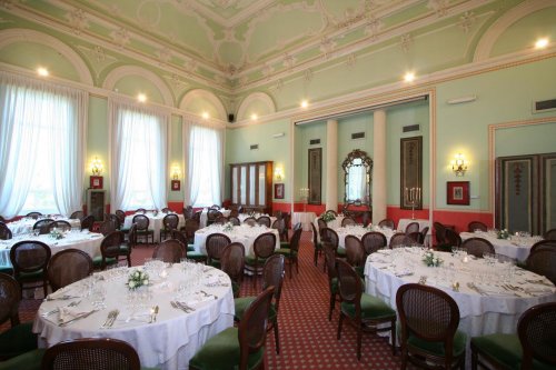 Die Pracht und Eleganz des Festsalons und des kleineren, beschaulicheren Saals Raggio repräsentieren den idealen Austragungsort für die Durchführung von Hochzeitsessen, Gala-Abenden und allen anderen Veranstaltungen, für die eine warme und erlesene Atmosphäre oberstes Gebot ist.