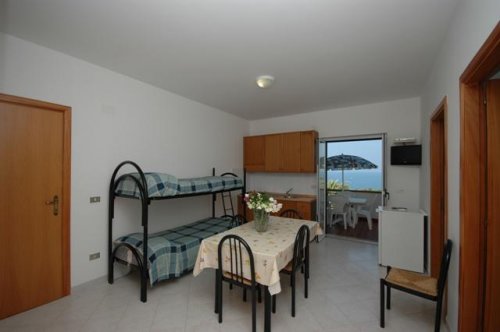 - Dreiraumapartment für 4 Personen mit 1 Doppelbettzimmer, einem Vorraum mit Etagenbett, Küche und Pavillon im Freien, eigenem Badezimmer.