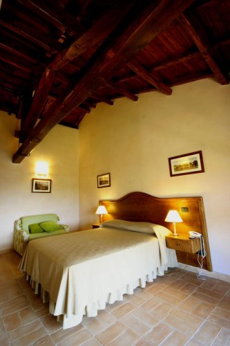 Auf unserem Landgut finden Sie 15 Zimmer mit eigenen Eingangsbereichen, deren Innenräume – ganz im Einklang zur umliegenden Natur – aus Kastanienmassivholz gefertigt und deren Wände mit Naturfarbe und ökologischer Löschkalkmasse (Kalk, Eier, Milch, Erde und Gewürzen) versehen sind. Zur Ausstattung gehören Satellitenfarbfernsehen mit LCD-Bildschirm, Minibar, eine Kräuterteezubereitung, Direktwahltelefon und Klimaanlage sowie jeweils ein freundliches, honigfarbenenes Badezimmer mit hängenden Sanitäranlagen, Haarföhn, großem Duschbereich, Hydromassagedusche oder Whirlpool-Wanne.