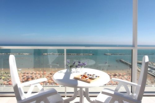 Die Residence Terminus genießt eine hervorragende Lage direkt am Strand von Viserba.