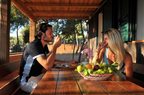 - Die Mobil Homes “Torre Delux” liegen in einem vom Feriendorf abgetrennten Bereich im Grünen, wenige Meter vom Meer entfernt.