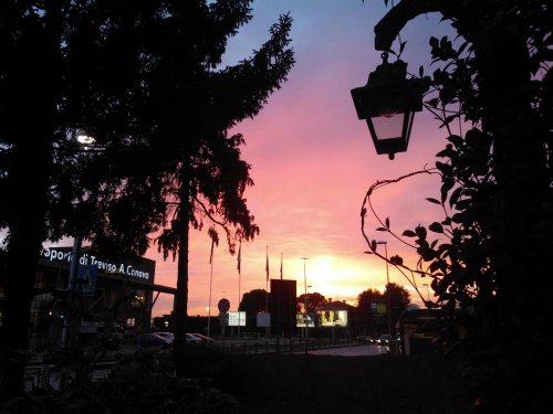 Vom Bahnhof in Treviso mit Buslinie 6 bis zur Haltestelle des Flughafens fahren.