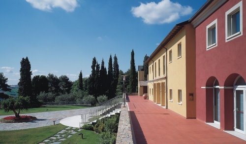 Der Hotelkomplex, der von einem typisch märkischen Hügel aus auf das Schloss von Paolo und Francesca in Gradara hinausgeht, besteht aus 3 Gebäuden – Herrenhaus, Casa Farneto und Casetta Rossa, die durch interne, mit Luserna-Stein gepflasterte Wege miteinander verbunden sind.