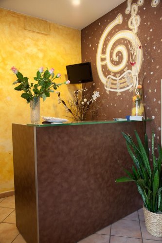 Upon exiting the station, head straight along Via Roma and turn left onto Via Risorgimento. The hotel is located at street number 28.