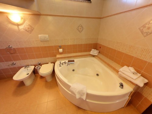 Le camere al piano terra dispongono di bagno privato con vasca idromassaggio, mentre quelle situate al primo piano hanno accesso a una terrazza comune e dispongono di bagno privato o condiviso, dotato di doccia con funzione sauna.