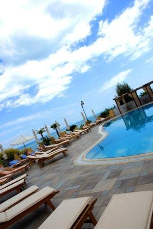 - the Executive Azzurra Suite, spacious and light with a large and comfortable lounge, a private sunbathing area and a large and exclusive terrace with a Jacuzzi tub and a panoramic view of the sea. Finely furnished and decorated in shades of blue it has air-conditioning, a mini-bar, two LCD satellite colour TVs, a direct dial telephone, a safe-deposit box, an en-suite bathroom with a hydromassage shower and a hairdryer.