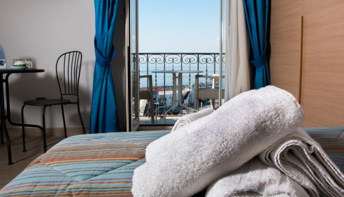 Rooms available: One-roomed apartment for 2 people, Twin with Sea View, Triple with Sea View, Quadruple with Sea View, Twin for Single Occupancy with Sea View.