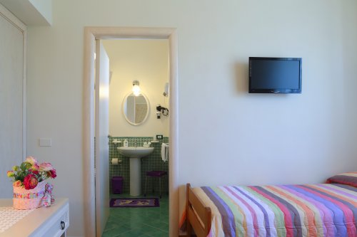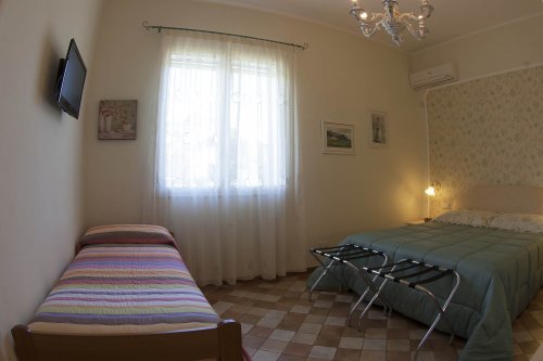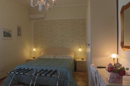 Tutte le camere del B&B “Villa Dei Giardini” dispongono di: bagno con doccia, aria condizionata, TV e una splendida vista sul giardino.