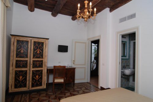 Gli ospiti potranno godere di piacevoli soggiorni in ambienti dai soffitti in legno con travi a vista e lampadari d'epoca a braccio, in un clima che garantisce quiete e relax.