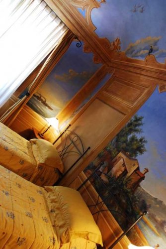 Surrounded by olive trees, the resort is found in a historic Medieval castle that has been renovated with beautiful frescoed walls and décor.
