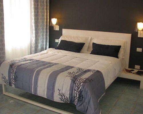 Tutte le camere, elegantemente arredate con elementi di design, sono dotate di TV color satellitare, minifrigo, aria condizionata autonoma, connessione Wi-Fi a Internet , cassetta di sicurezza, balcone attrezzato di tavolo, sedie e stendino, servizi privati con box doccia e asciugacapelli.