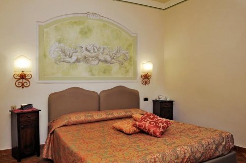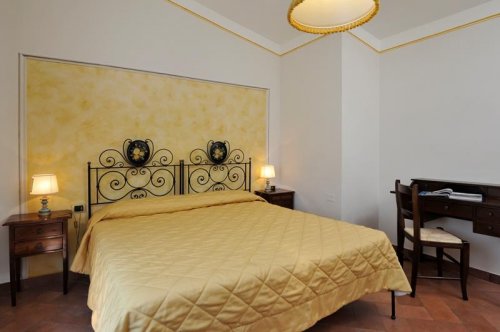 Le camere in formula hotel sono distribuite su due piani raggiungibili da due scalinate in travertino.