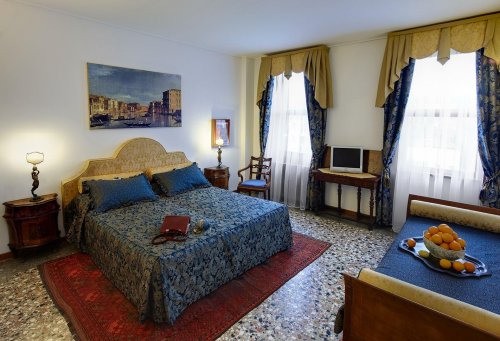 - Superior double rooms with a lovely view of the canal or the rooftops of Venice, equipped with a double bed with double cushions (separate beds available), climate control, a minibar, satellite colour television, a direct dial telephone, a safety deposit box, an outlet for internet access (for guests with their own computers), and an en suite bathroom with a shower and a hairdryer.
