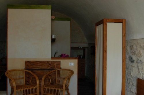 L’ampia corte è arricchita da una piccola piscina, due orti ombreggiati da ulivi e profumati da erbe aromatiche, un locale con un vecchio forno, due stanze adibite a piccolo museo etnografico.