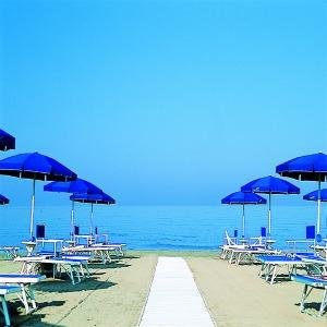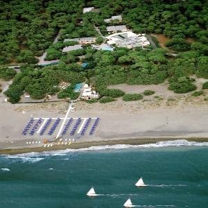 L'intero complesso è circondato da un parco di pini e ginepri a pochi passi dal mare.