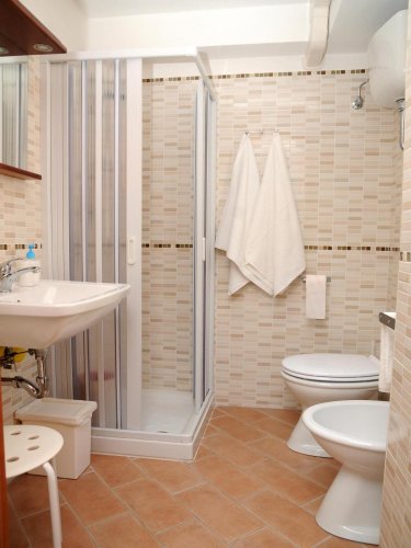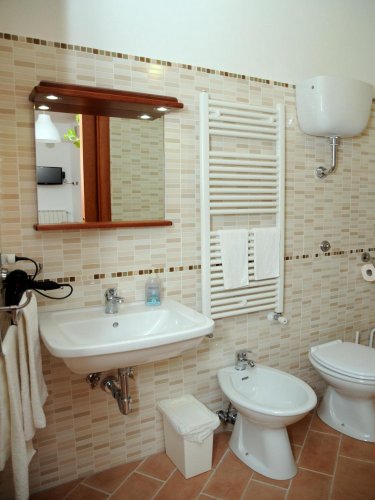Il trilocale è composto da una spaziosa camera tripla e soggiorno con divano letto. Dispone di lavatrice ad uso privato e di una terrazza riservata con vista sulla torre del castello medievale e sulla cupola della Chiesa.