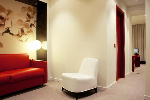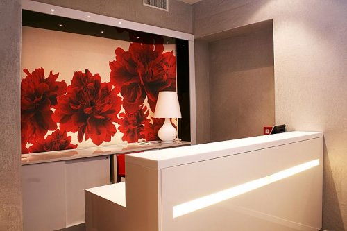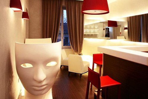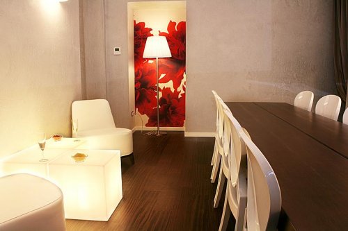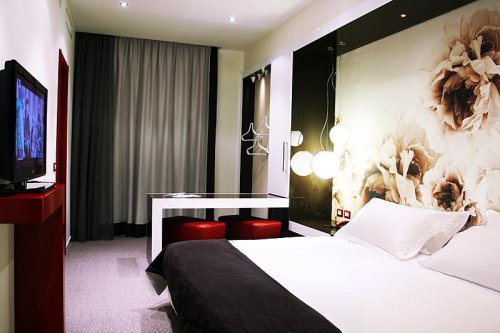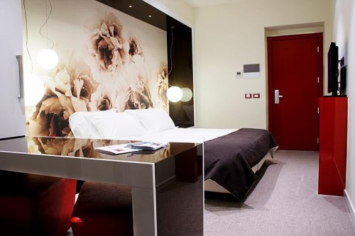 Fabio Massimo Design Hotel's rooms offer original harmonious interiors decorated with tones of white, red and dark brown.