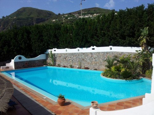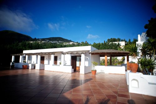 Surrounded by white houses built in typical Aeolian style, the villa stands out thanks to its elegant and original design surrounded by a well-manicured garden with Mediterranean plants and beautiful bougainvillea.